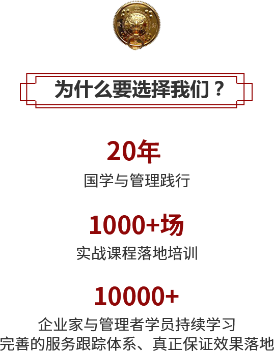 集眾家之長(zhǎng),成一家之言;盡一己之力,造萬(wàn)家之福,系統(tǒng)研究《儒》、《釋》、《道》、《兵》、《法》、《易》、《帝王學(xué)》,成就企業(yè)家自己的價(jià)值觀與事業(yè)基礎(chǔ),實(shí)現(xiàn)平衡、幸福、卓越的人生